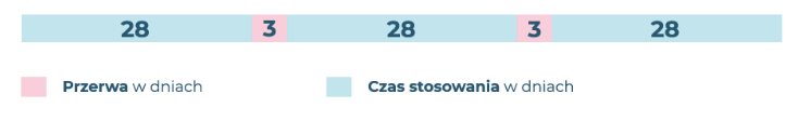 Dla skutecznej terapii należy zastosować DeflaGyn® w 3 seriach po 28 dni z przerwami jak poniżej: